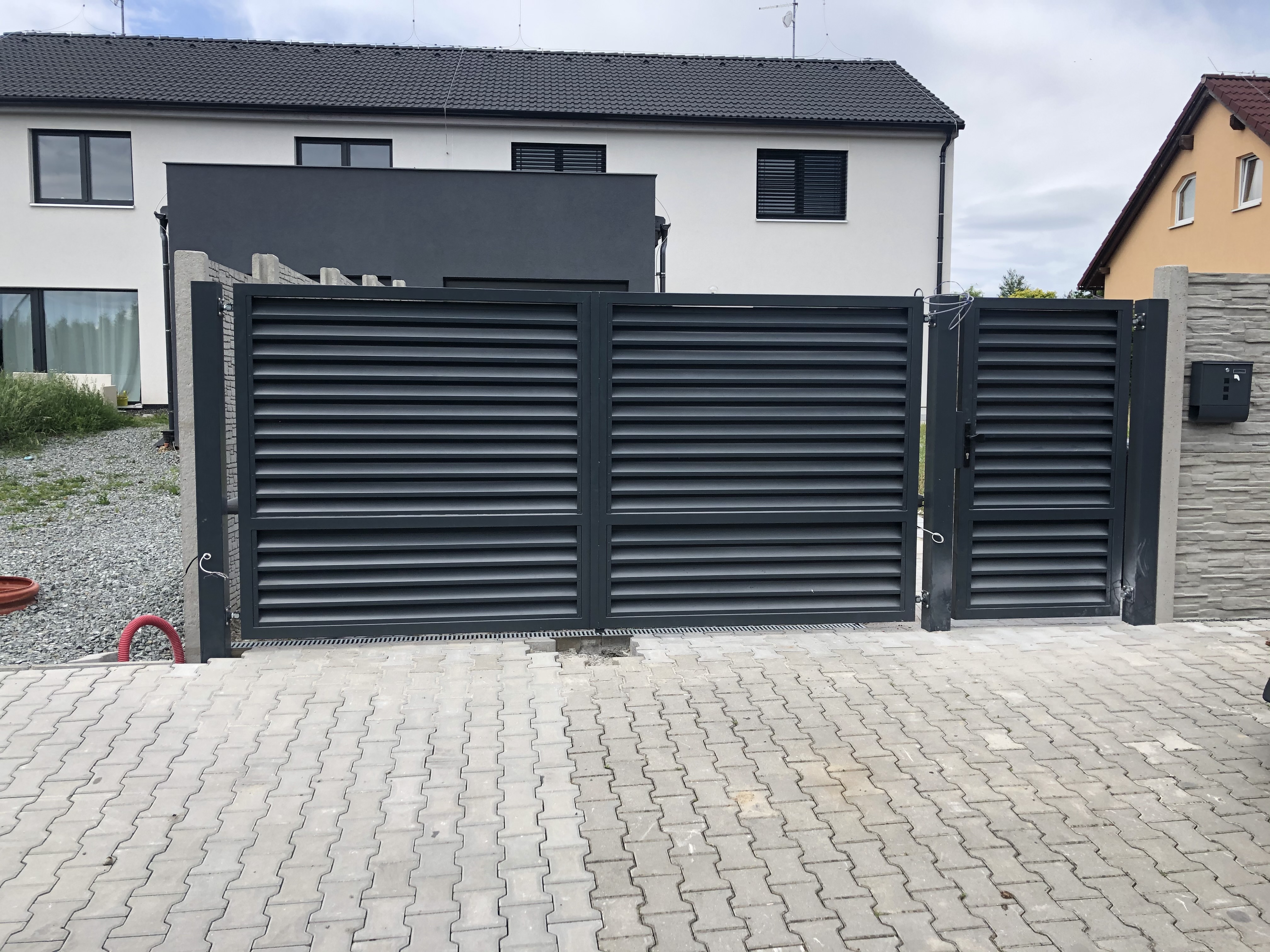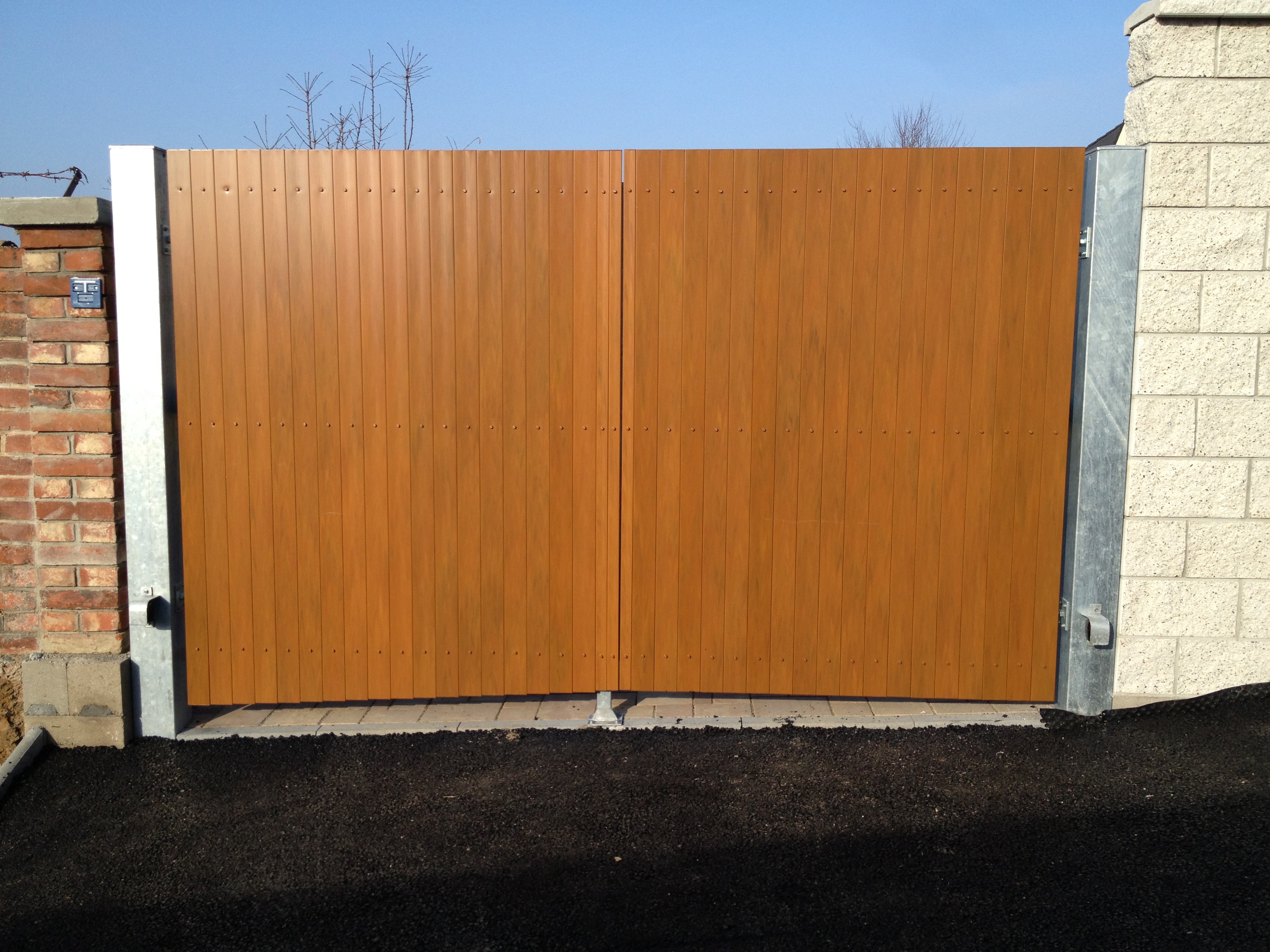Křídlová brána je typ brány opatřený panty, která se standardně otevírá směrem dovnitř. Samozřejmě není problém změnit směr otevírání. Pokud se jedná o zakázku, kde ještě nejsou hotovy stavební práce, lze tuto bránu osadit podzemními motory